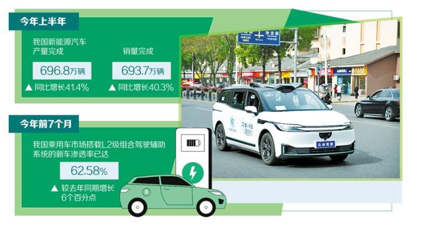 智能网联汽车是全球汽车产业转型升级的战略方向,正在推动产品形态、产业格局、基础设施和出行方式发生深刻变革。经过多年发展,我国智能网联汽车产业发展取得积极成效,电动化、智能化转型步伐持续加快。今年上半年,我国新能源汽车产销分别完成696.8万辆和693.7万辆,同比分别增长41.4%和40.3%。