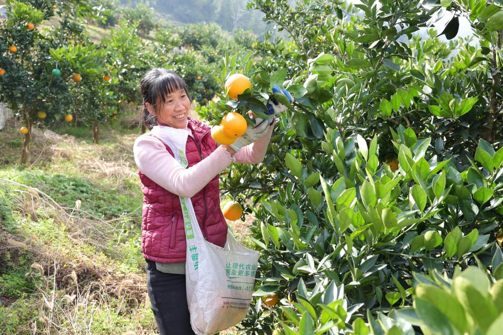 清晨八点,65岁的村民李宗枝和老伴已在柑橘园里忙碌起来。“基地建起来后,一年四季都有活干,施肥、剪枝、采果……我俩一年能挣五六万元,在家门口干活,心里踏实!”她边说边将刚摘下的柑橘轻轻放入随身的口袋中。