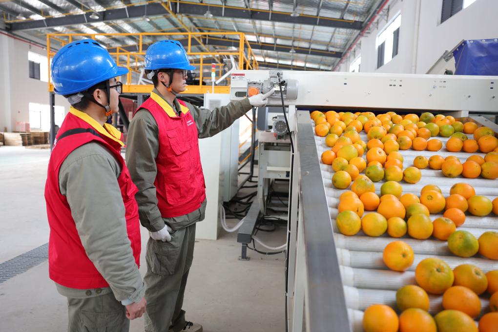 山脚下的洗选果车间里,机器低声轰鸣,自动化生产线高速运转。当天采摘的万余斤柑橘,经过清洗杀菌、保鲜预干、重量检测等16道工序,仅用5分钟就完成了分选。“这条生产线让效率大幅提升,每处理10万斤柑橘可节省人工成本2万元。”基地负责人谭志龙说。