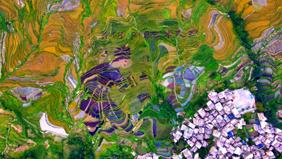 元阳县拥有世界文化遗产、全球重要农业文化遗产、世界灌溉工程遗产、世界最佳旅游乡村四大世界级名片,在这里,19万亩梯田绵延成大地史诗,3700多级梯田盘旋入云,森林、村寨、梯田、水系“四素同构”循环生态系统一览无遗。国家湿地公园、国家4A级旅游景区、“绿水青山就是金山银山”实践创新基地等国字号荣誉刻画了元阳的生态文明之美,哈尼古歌、民族刺绣、棕扇舞等非遗技艺镌刻了元阳的文化传承之诗,长街宴、矻扎扎节、火把节、泼水节等节日庆典让元阳各族人民同栽民族团结之花、共享繁荣稳定硕果。
