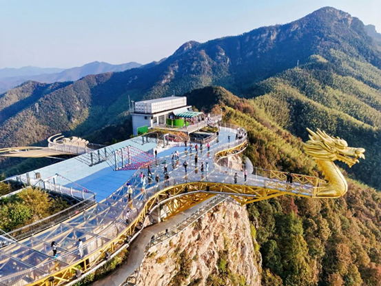 随后的六万情峡考察更是亮点纷呈:代表们乘坐魔毯,单程20分钟左右便直达六万情峡的龙头观景台。站在玻璃平台上,76%的森林覆盖率造就的天然氧吧中,每一口呼吸都满是清新;大型实景演出《大别山传奇》以真实历史为背景改编而成,重现当年的革命岁月,让不少代表热泪盈眶;还有峡谷游船的惬意与竹海滑道的刺激,让大家沉浸式体验了景区的多元业态。“秋季的六万情峡层林尽染,演出和风景都特别好,一定要来现场才能感受到这份(演出的)震撼。”来自江西的旅行商代表在考察中由衷赞叹。15日夜晚,今年全新落成的迎驾大剧院迎来“满堂彩”,一出经典的黄梅戏让代表们领略了安徽传统戏曲文化的魅力。待演出结束,迎驾春风街的绚烂烟花准时升空,将气氛推向高潮。